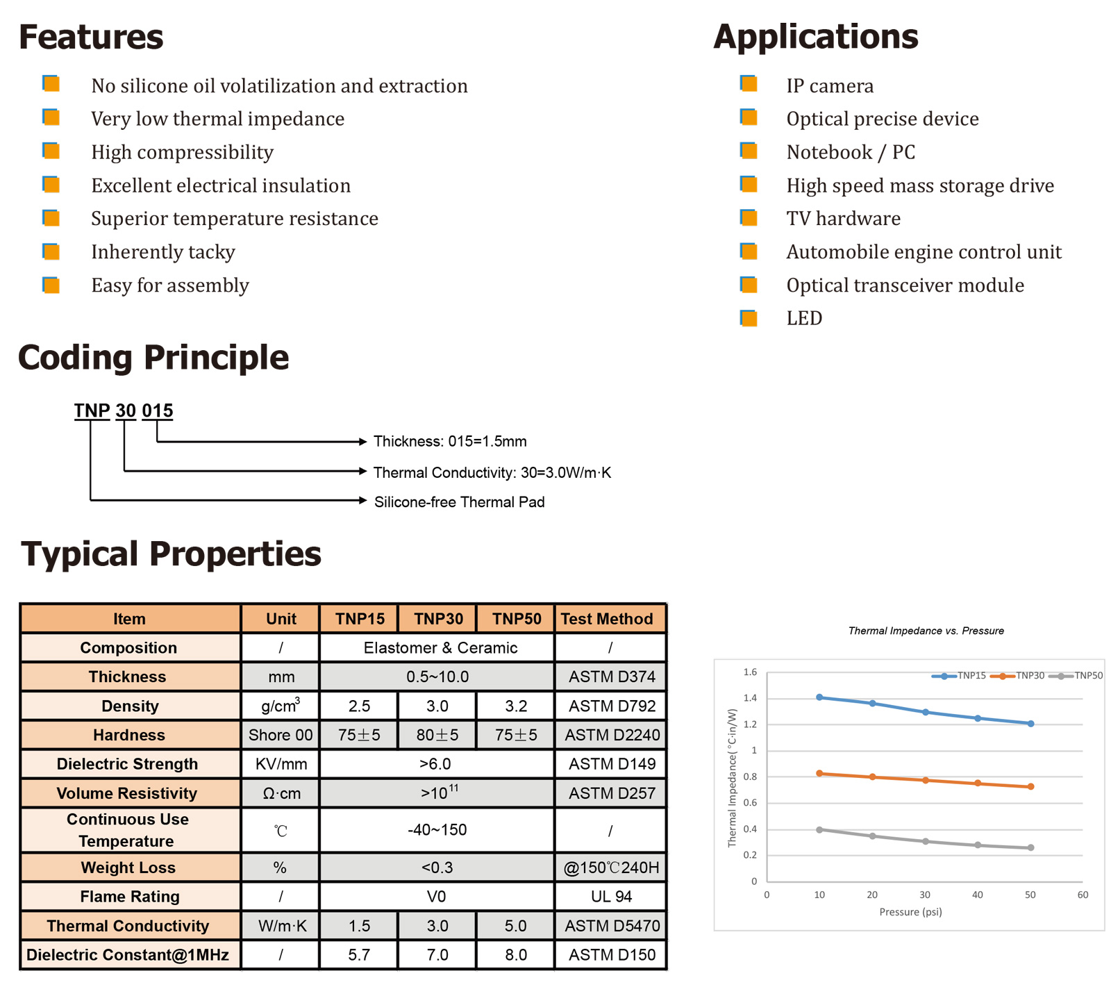 TNP系列無硅導熱墊