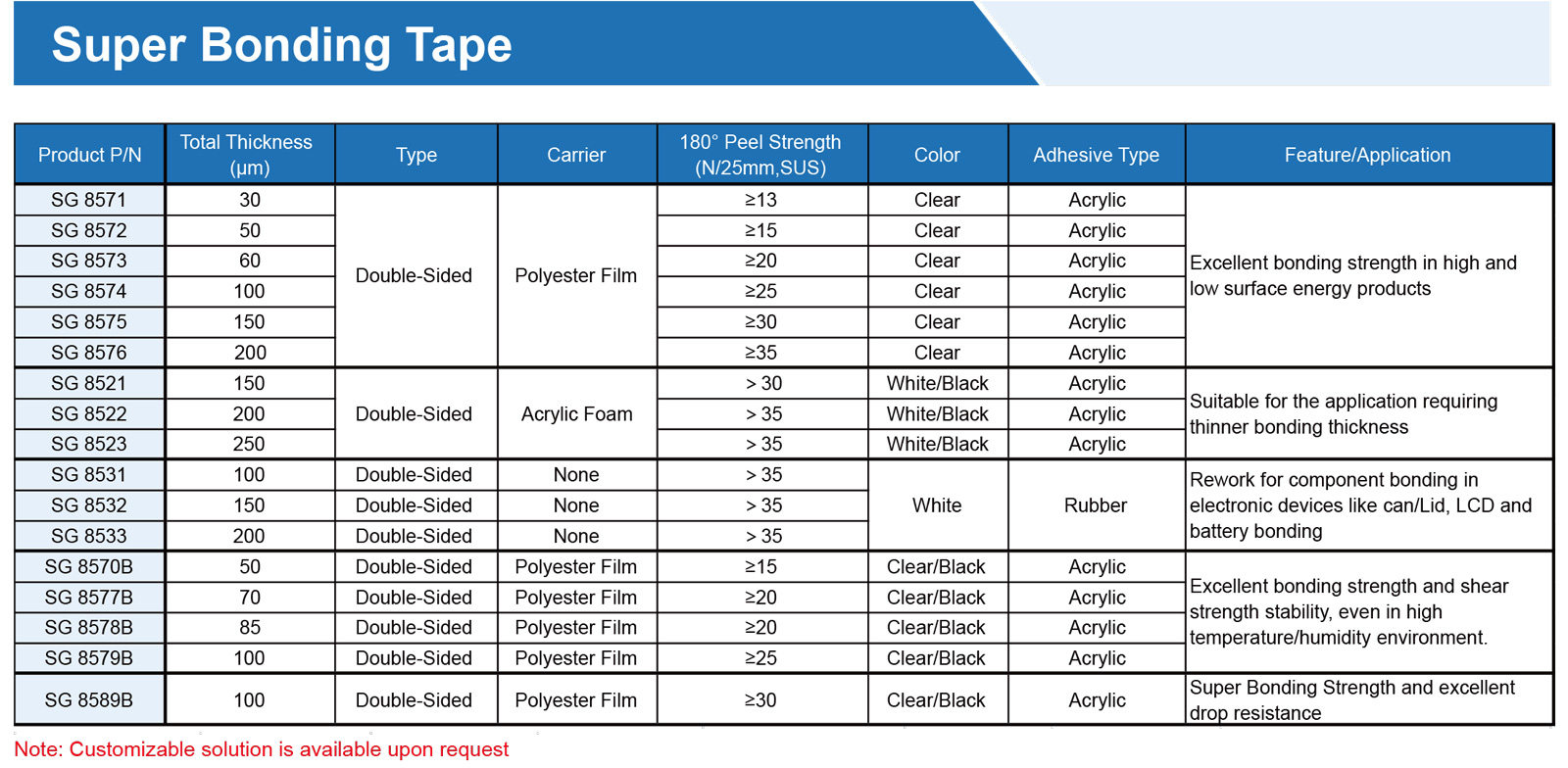 提供各種膠帶,由PET、無紡布、泡沫、涂有丙烯酸、硅樹脂、橡膠、熱熔、熱轉化粘合劑的PI基材制成。可提供各種寬度、長度和釋放襯墊,以滿足特定需求,專為工業、商業和家庭應用的特殊環境而設計。