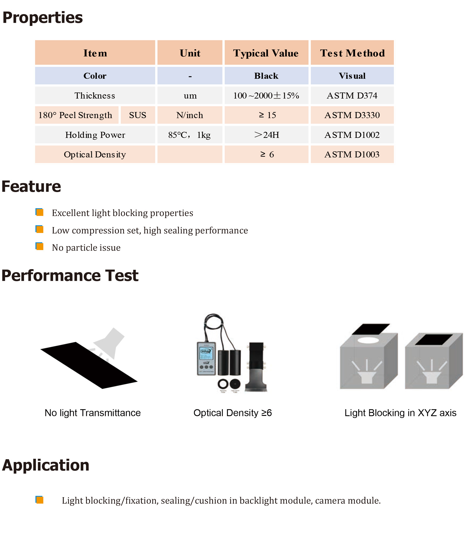 首頁 > 產品 > 泡棉材料 > 遮光泡棉 > 80160 系列遮光泡棉